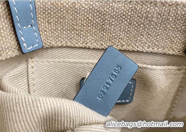 Shop Grade Chloe Mini Woody Tote Bag in Linen Canvas and Calfskin Leather 1120 Denim Blue 2025