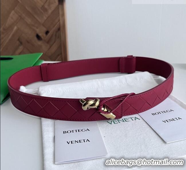 Luxurious Bottega Veneta Intrecciato Leather Belt 2cm with Knot Buckle BV26010402 Burgundy/Silver 2025