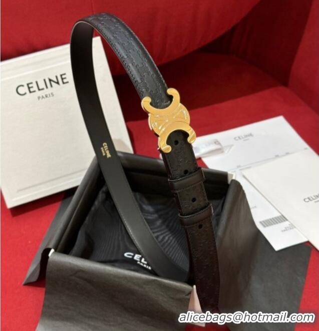 Shop Promotional Celine Embossed Leather Belt 2.5cm with Gold Triomphe Logo Buckle CE011002 Black 2025