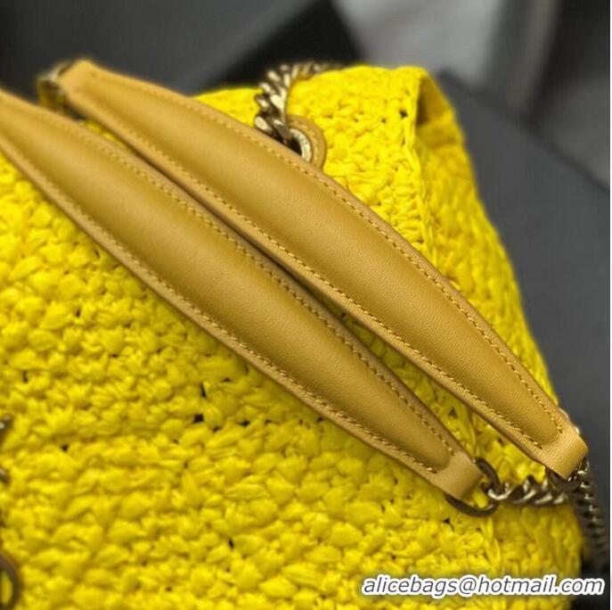 > Yves Saint Laurent Bag > Shop SAINT LAURENT JAMIE MEDIUM CHAIN BAG CARRE RIVE GAUCHE IN CROCHET RAFFIA AND SMOOTH LEATHER 515821 YELLOW