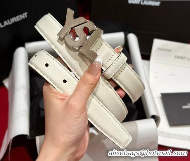 Shop Saint Laurent Women's Supple Calfskin Leather Belt 2.5cm with Maxi YSL Buckle 25060 White/Silver 2025