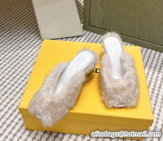 Shoulder Carry Fendi Arco Wedge Mules 7.5cm in Rabbit Fur White 1030003