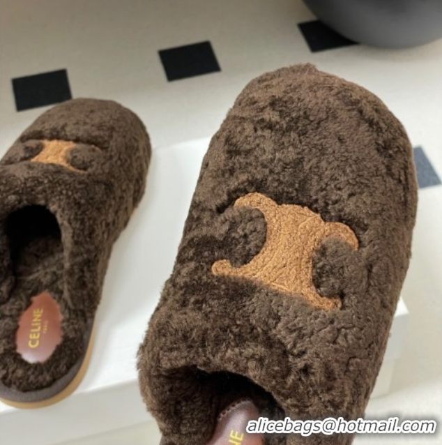 > Shoes Plaza > Celine Shoes > Top Grade Celine Georgia Flat Slides Sandal in Shearling Dark Brown 1024067