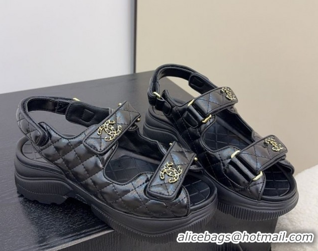 Charming Chanel Shiny Calfskin Platform Sandals 5.5cm G46293 Black 2026