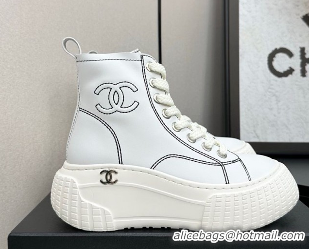 Sophisticated Chanel Calfskin Leather High Top Platform Sneakers White 2025 CH110106