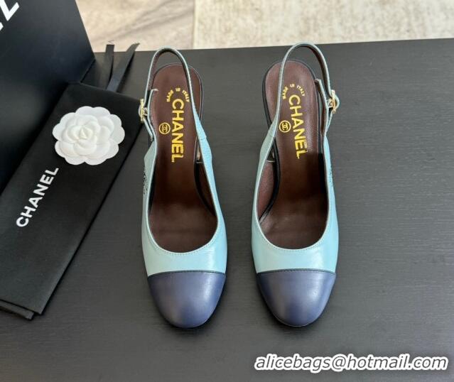 > Shoes Plaza > Chanel Shoes > Sophisticated Chanel Calfskin Slingback Pumps 9cm with Side CC G45566 Green/Blue 424010