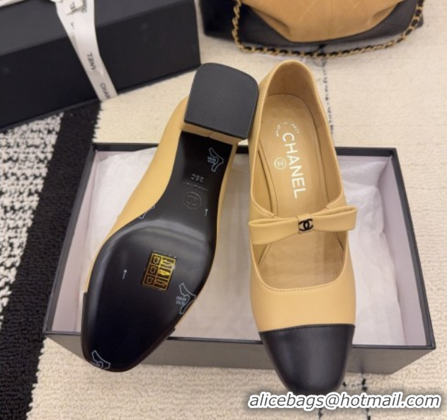 > Shoes Plaza > Chanel Shoes > Sophisticated Chanel Lambskin Leather Mary Janes Pumps 5cm with Bow Beige 2025 CH110302 1103102