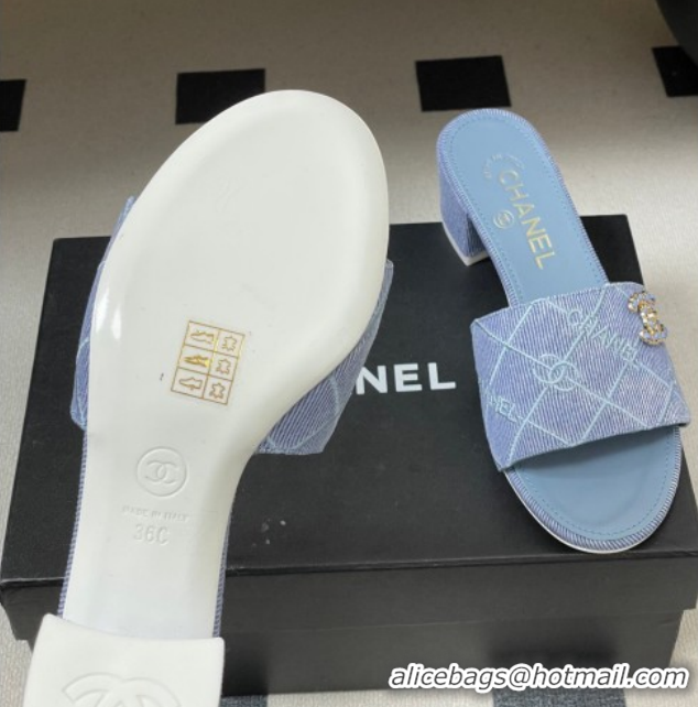 Hot Style Chanel Quilted Cotton Heel Slides Sandal 5cm CH030902 Light Blue 2026
