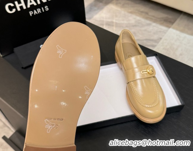 Classic Hot Chanel Shiny Calfskin Loafers with Button Strap Beige 2025 G46796 1031091