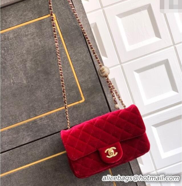 Sophisticated Chanel Velvet Mini Flap Bag with Strass Ball AS1787 Red 2025