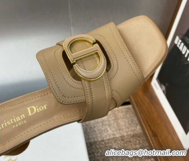 Top Grade Dior 30 Montaigne Heel Slides Sandal 4.5cm in Calfskin Leather Beige DR082205 822092