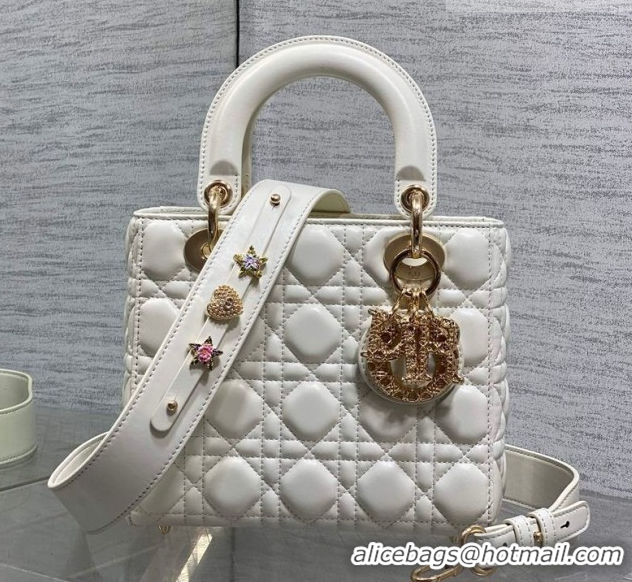 Fashion Dior Small Lady Dior My ABCDior Bag in Cannage Lambskin Leather with Openwork Charm DR012603 White 2026