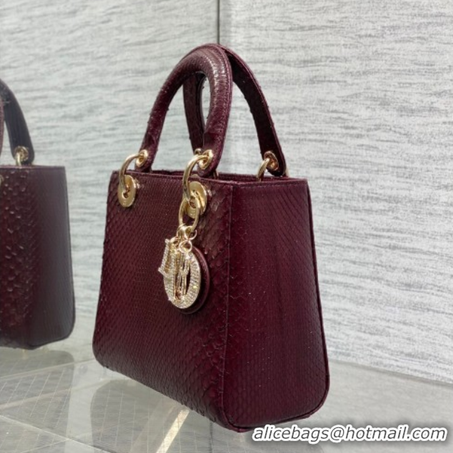 Sophisticated Dior Small Lady Dior Bag in Snakeskin Leather DR012606 Burgundy 2026
