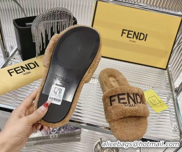 Sophisticated Fendi Flat Slides Sandal in Shearling Wool Beige FE103002 1030011