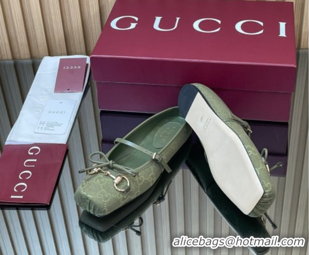 Sophisticated Gucci Horsebit Flat Mules in GG Canvas Green 1021069