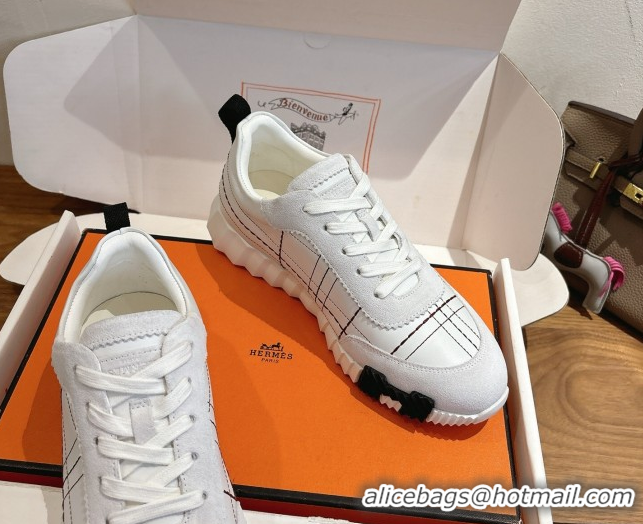 Sophisticated Hermes Bouncing Sneakers in Embroidered Leather and Suede White 1222041 2026