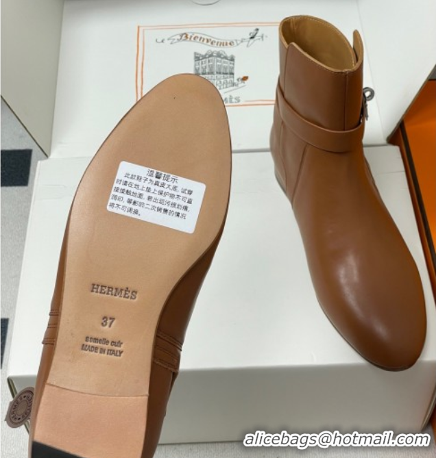 Sophisticated Hermes Neo Flat Ankle Boots in Calfskin Leather with Kelly Buckle Brown 1023181