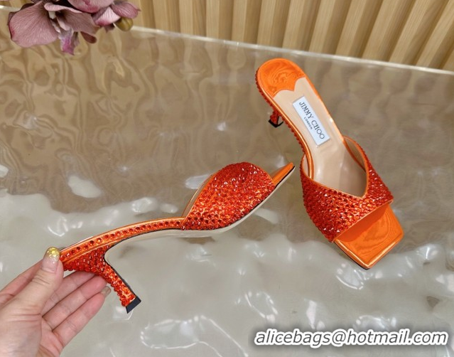 Durable Jimmy Choo Skye Heel Slides Sandal 6.5cm in Glazed Leather and Strass Orange2 2025 JC103103