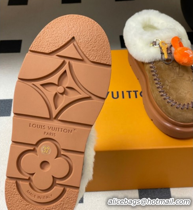 Your Position: Home > Shoes Plaza > Louis Vuitton Shoes > Sophisticated Louis Vuitton Cortina Closed Mules in Suede and Wool Brown 1AITIN 1219107