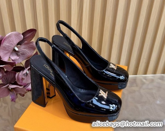 Sophisticated Louis Vuitton Swing Platform Slingbacks Pump 11cm in Patent Leather Black/Gold 1AIDF8 1219048