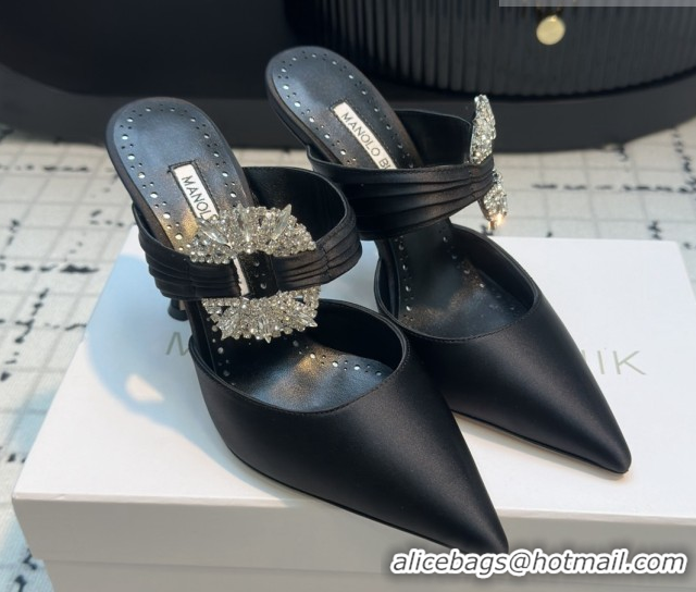 Sophisticated Manolo Blahnik Crystals Embellished Mules in Satin 9cm Heel 5112517 Black 2026