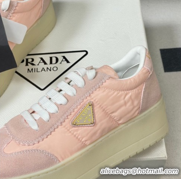 Sumptuous Prada Downtown Bold Nylon and Suede Platform Sneakers 5cm Light Pink 0228049