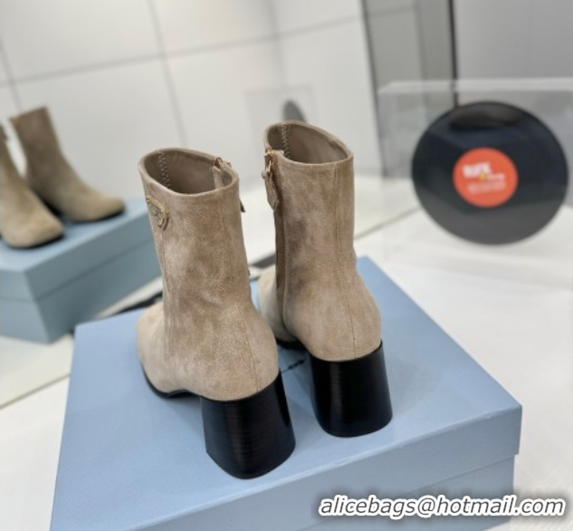 Sophisticated Prada Suede Heel Ankle Boots 6.5cm Beige 2025 PR102705 51027078