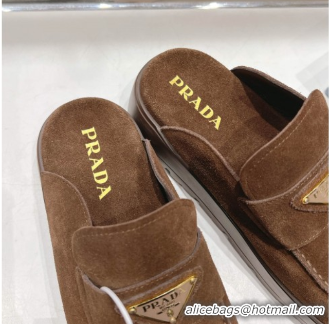 > Shoes Plaza > Prada Shoes > Sophisticated Prada Suede Platform Mules Cocoa Brown 2025 1XZ778