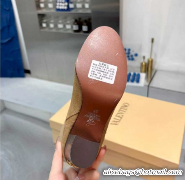 Sophisticated Valentino Suede Heel High Boots 8cm with Buckle Beige 1104081