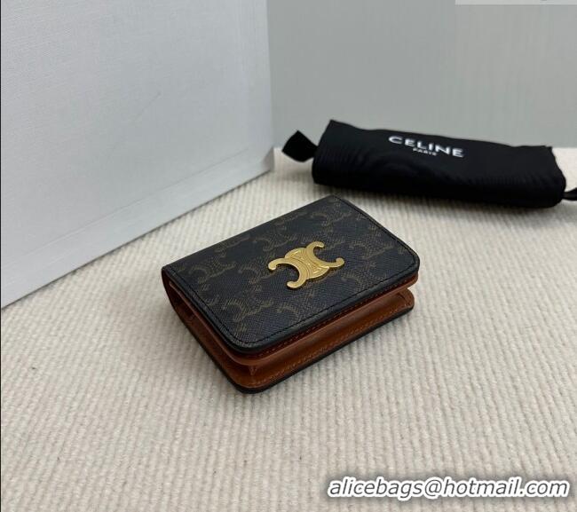 Spot Bulk Celine Triomphe Canvas Compact Wallet 10K622 Brown 2024
