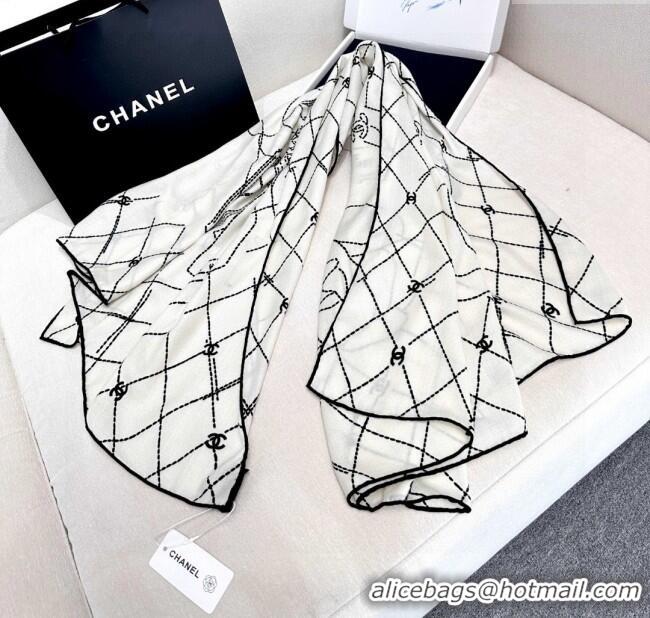 Spot Bulk Chanel Cashmere & Silk Scarf 140x140cm CH110713 White 2025