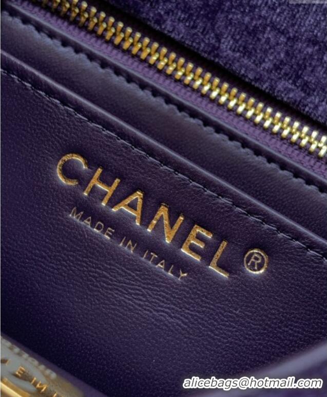 > Chanel Handbag > Chanel 2025 Bags > Spot Bulk Chanel Velvet Mini Square Flap Bag with Strass Ball AS1786 Purple 2025