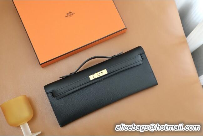 Spot Bulk Hermes Kelly Cut Clutch Bag in Original Swift Leather H0307 Black/Gold (Full Handmade)