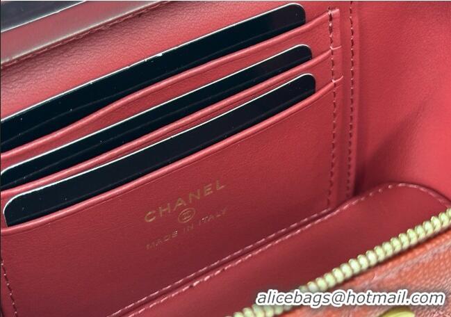 Low Price Chanel Grained Shiny Calfskin Long Vanity Case with Chain and Top Handle A96161 Red 2025