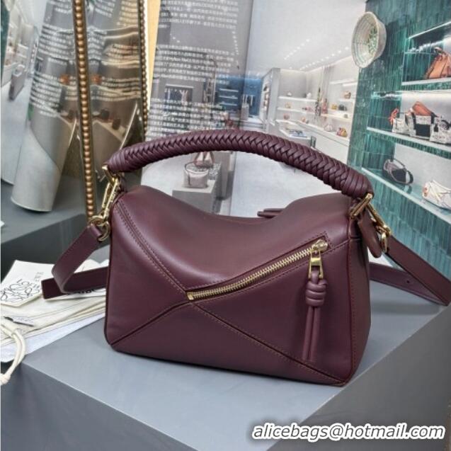 Spot Discount Loewe Small Puzzle Bag In Smooth Calfskin With Woven Handle 0925 Dark Burgundy 2025
