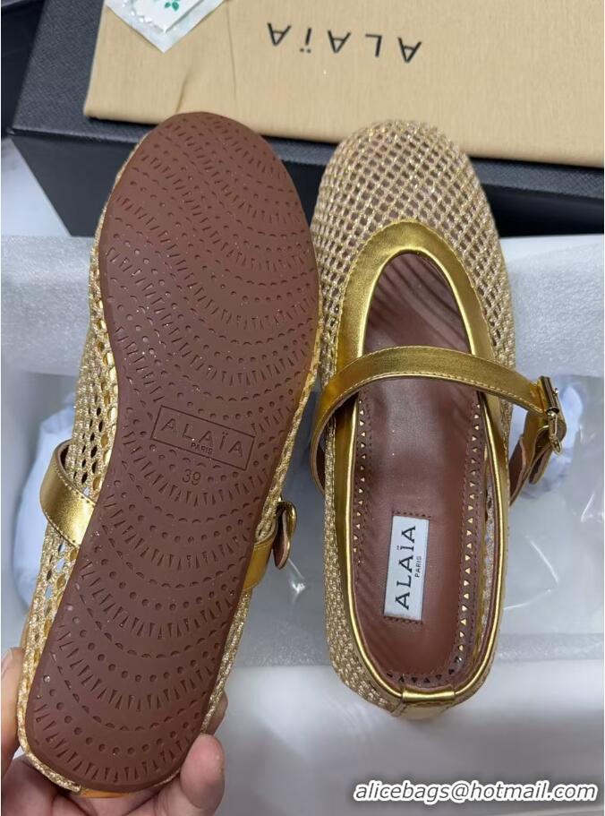 > Shoes Plaza > Alaia Shoes > Trendy Design Alaia Ballerinas Flat in Fishnet 0531 Gold/Beige 2024
