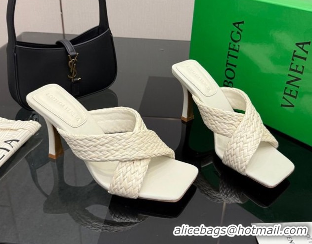 Top Design Bottega Veneta Riva Flat Slides Sandal 9cm in Braided Straw 861494 White 2026