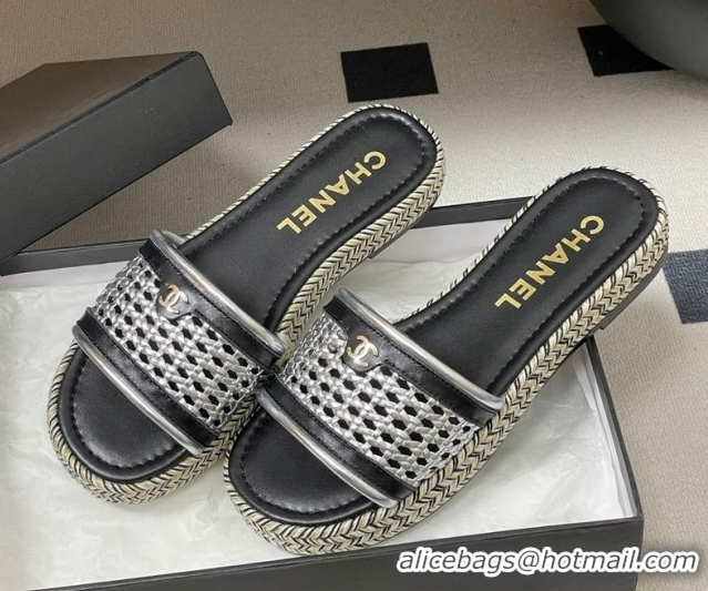 Sumptuous Chanel Braided Calfskin Leather Flat Slides Sandal CH030901 Silver 2026