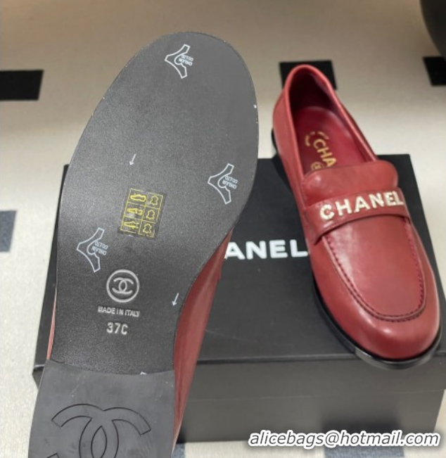 Trendy Design Chanel Calfskin Leather Loafers with Letters Strap Red 2025 CH103102 1031100
