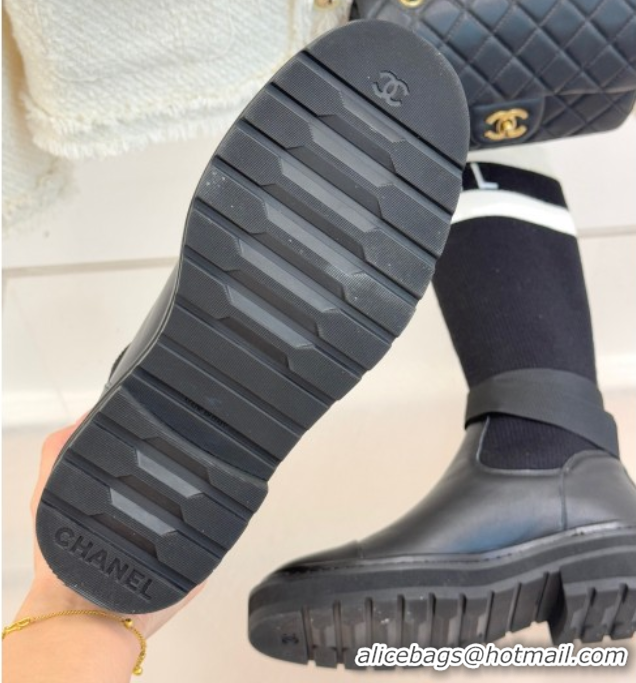 Duplicate Chanel Knit and Calfskin Medium Boots with Buckle Black 2025 CH11030317 1103129