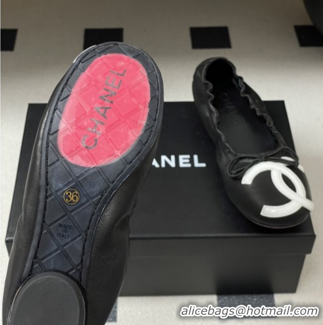 Perfect Chanel Lambskin Leather Ballet Flats with Maxi CC CH122402 Black/White 2026