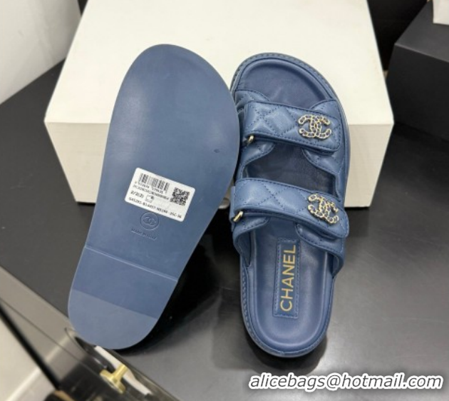 Low Cost Chanel Lambskin Leather Strap Flat Slides Sandal with Chain CC CH030614 Dark Blue 2026