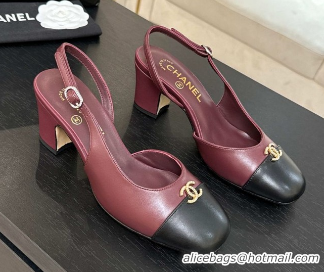 Stylish Chanel Lambskin and Calfskin Leather Slingback Pumps 6.5cm with Strass CC Burgundy CH110301