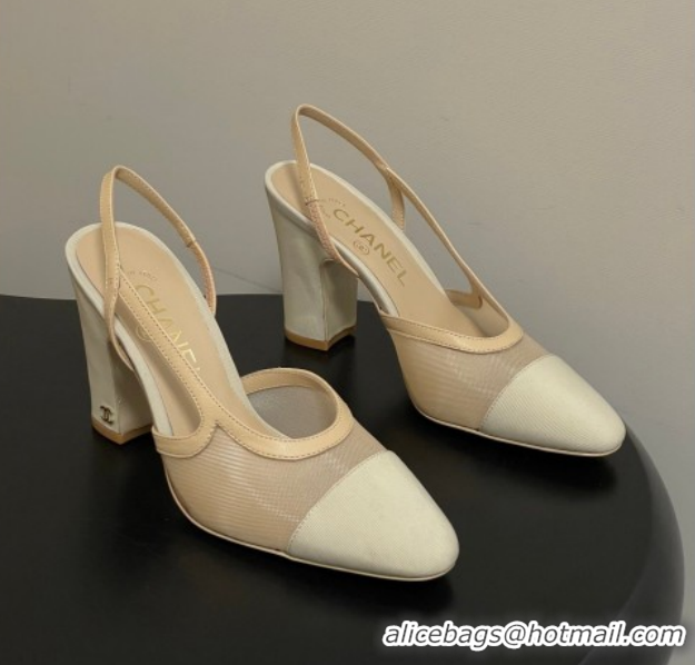 Stylish Chanel Mesh & Grosgrain Slingbacks Pump 9cm G45509 Beige 2026