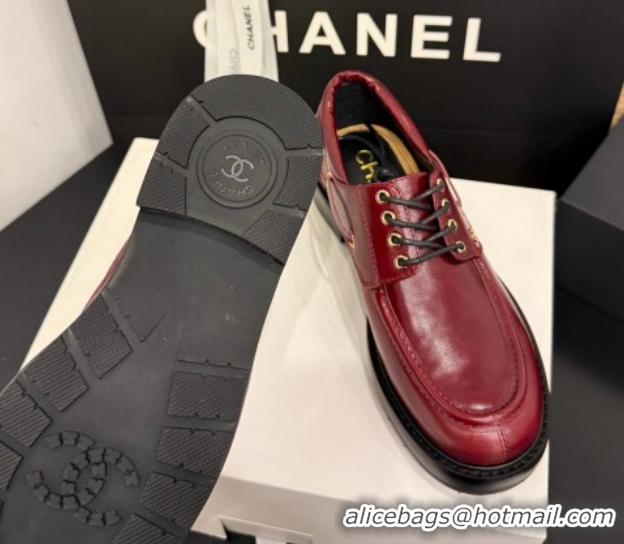 Stylish Chanel Shiny Calfskin Leather Laced-up Shoes CH030615 Red 2026