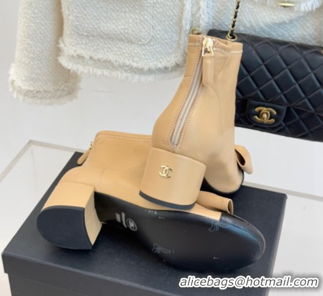 Good Quality Chanel Lambskin Heel Ankle Boots with Bow Beige 2025 CH110303 1103123
