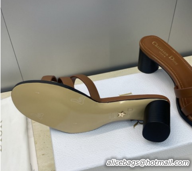 Stylish Dior 30M Heeled Slides Sandal 5cm in Calfskin Leather with CD Pearl Brown 1217020