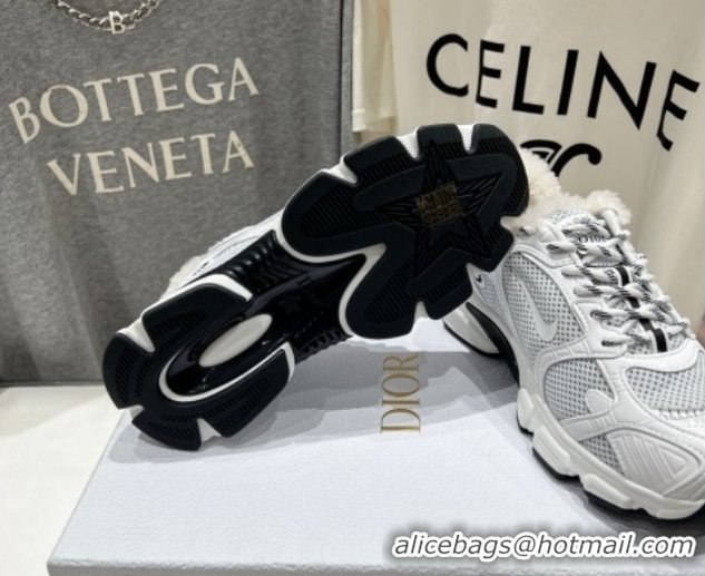 Charming Dior Chrono Sneakers in Mesh, Leather-Effect and Wool White/Grey 1029075