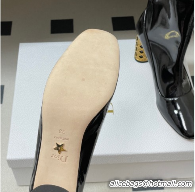 Unique Style Dior Icon Ankle Boots 8cm Cannage Metal-Tone Heel in Patent Leather Black 1029047
