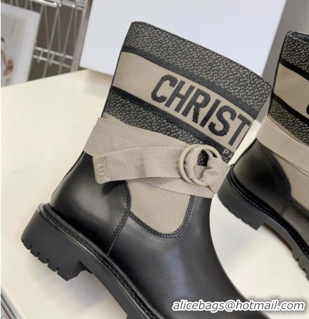Classic Hot Dior D-Major Ankle Boots in Fabric and Calfskin Light Beige 2025 D09021 1029015